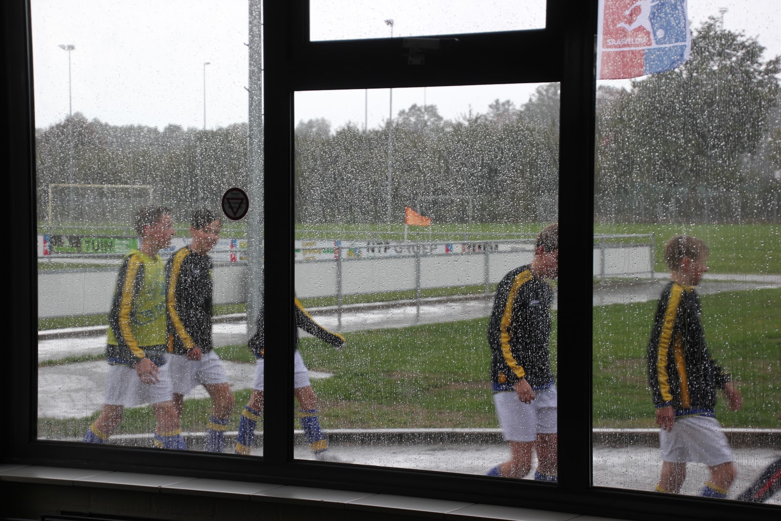 Maar denk niet dat Stevo zich zomaar gewonnen gaf. Het beschikte namelijk over een bredere selectie dan het gemiddelde juniorenvoetbalteam. Na rust kreeg hun twaalfde man (hun grensrechter) een nog meer vrijere rol dan hij al had voor de pauze. Uw IWEKB-verslaggever had zich inmiddels ter hoogte van de Geesterense vlaggenist opgesteld om een en ander van dichtbij te kunnen aanschouwen. En het moet gezegd, de tactiek van Stevo betaalde zich uit. Een schitterende pass van Sem op Teun die een vrije doortocht had op het doel van Stevo, werd schaamteloos buitenspel gevlagd terwijl Teun bij het spelen van de bal nog een halve meter achter zijn man liep. Om dan te durven vlaggen voor buitenspel getuigt van een echte over-mijn-lijk-mentaliteit. Je moet lak hebben aan spelregels, fatsoen en respect naar de scheidsrechter, want winnen, daar gaat het om. Zo hield hij Stevo C1 op de been.